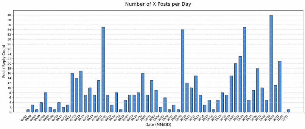 Mickelson — who had averaged about 10 posts on X a day over the past month — did not post again until 9 p.m. ET on Sunday, November 2, the longest he has gone without posting on X since August.