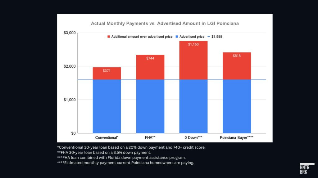 That means, even by a conservative estimate assuming the most favorable rate reserved for the highest credit score borrowers, the average Poinciana resident is likely paying at least $2,417, or over 51% more than the advertised monthly payment.