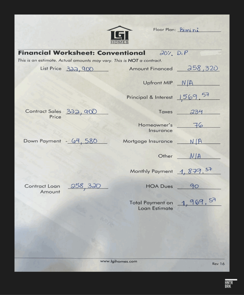The cheapest possible monthly rate LGI could offer came out to $1969.59, almost 30% over the advertised price, when homeowner’s insurance, the HOA fee, and taxes were added.