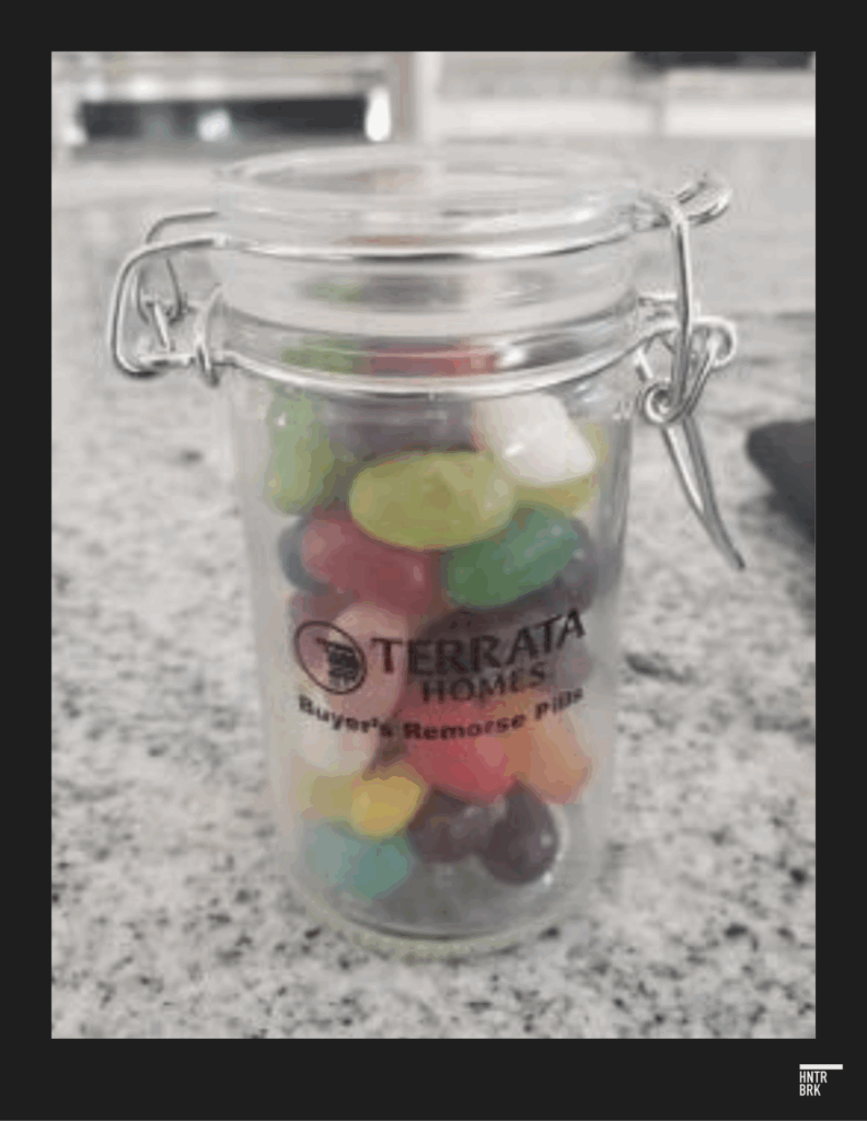 In a weirdly twisted touch, LGI apparently gave one of its customers a jar of jellybeans labeled “Buyer’s Remorse Pills” as a closing gift.2