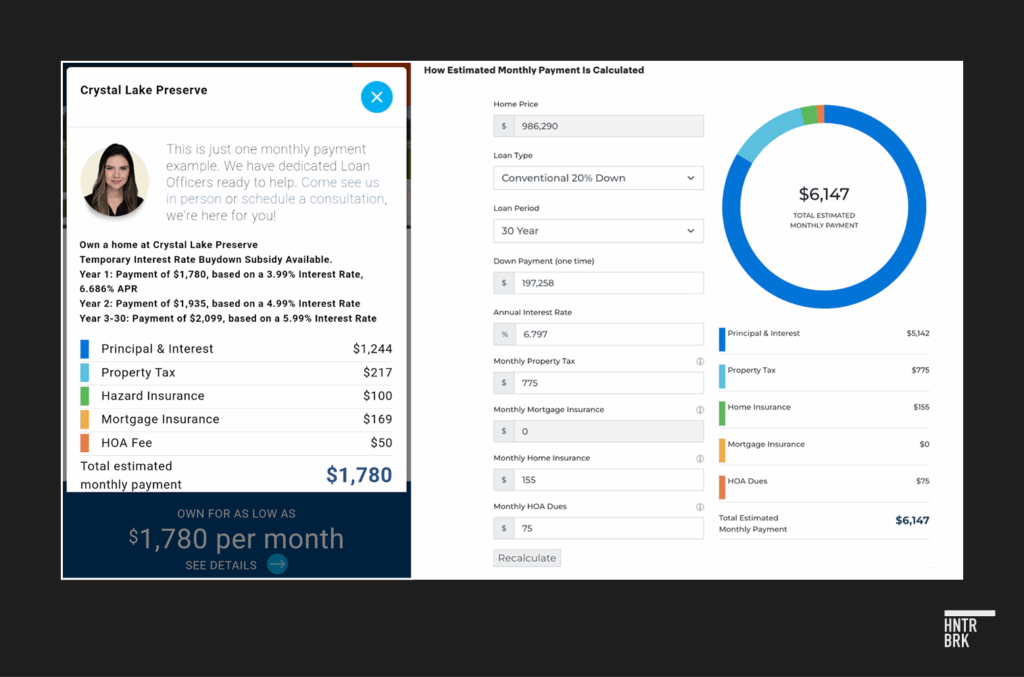 When asked, the sales rep kindly explained that the only way to achieve the advertised price of $1,599/month is to put down $130,000 — nearly 42% of the total sale price at the time.