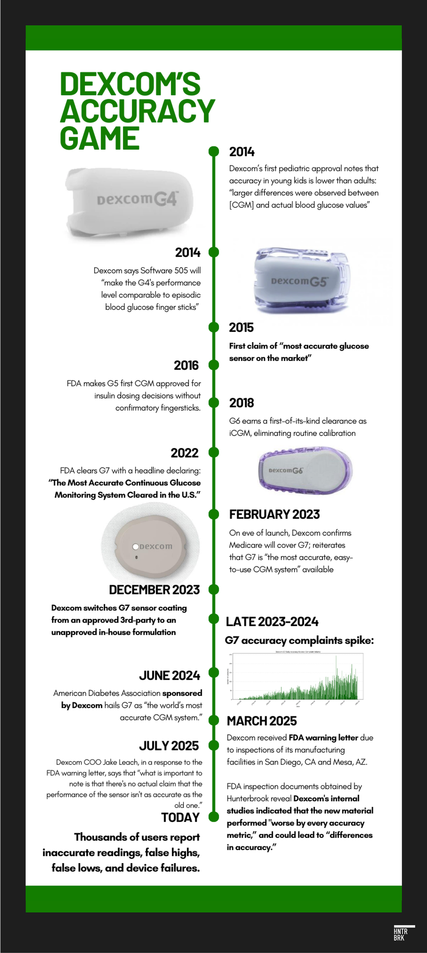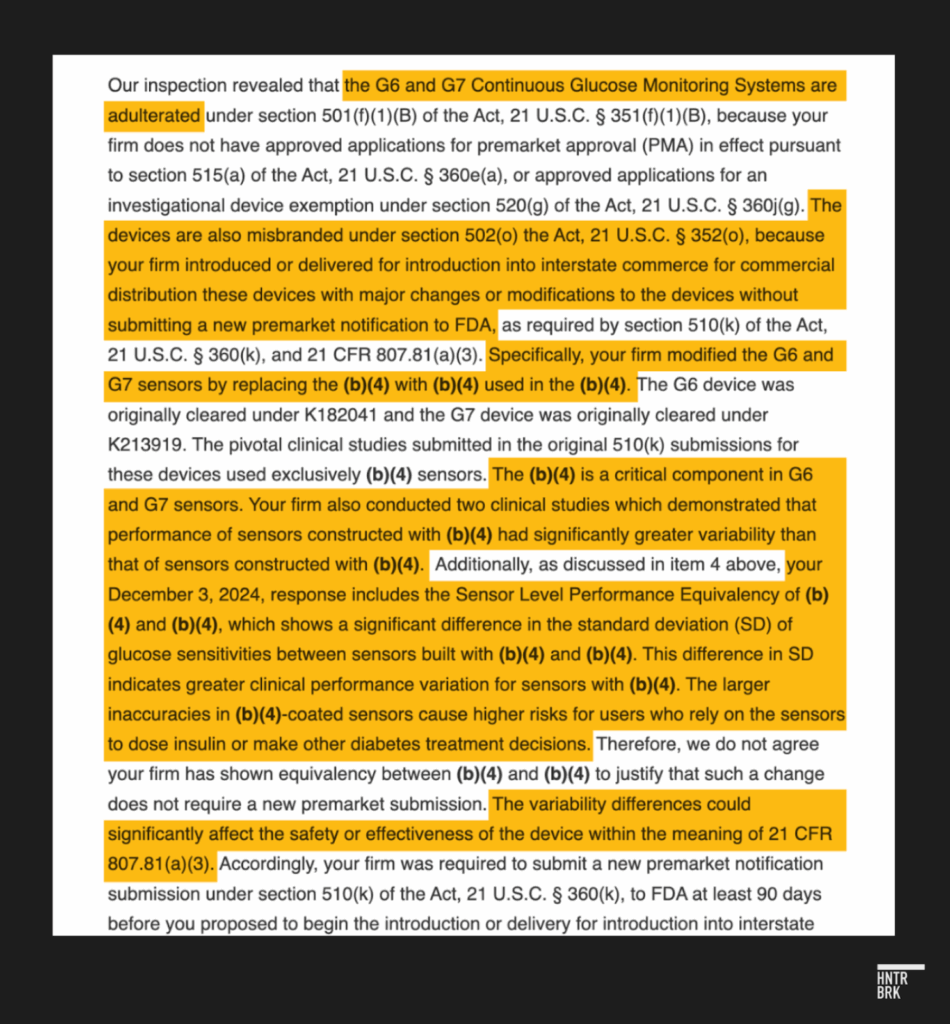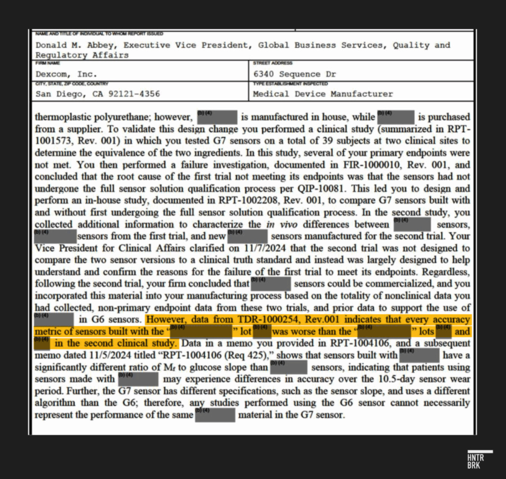 Based on Hunterbrook Media’s reporting, Hunterbrook Capital is short $DXCM at the time of publication, and hedging with a basket of derivatives that may include securities named in this article. Positions may change at any time. We have partnered with the litigation firm Wisner Baum LLP to explore a class action lawsuit based on our reporting. We’ve also petitioned the FDA to intervene and shared this investigation with a senior HHS official. Doctors or others wishing to support the petition may do so via ideas@hntrbrk.com. See website for full disclosures.