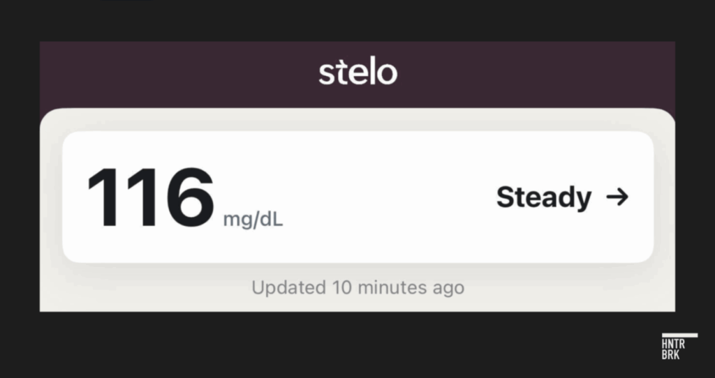 After a meal on day two, Dexcom’s Stelo measured a steady reading of 116 mg/dL.