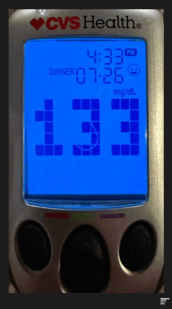 A simultaneous finger stick reading showed 133 mg/dL — a 17-point difference, which is particularly meaningful given the reporter does not have diabetes, therefore likely has a tighter blood sugar range.