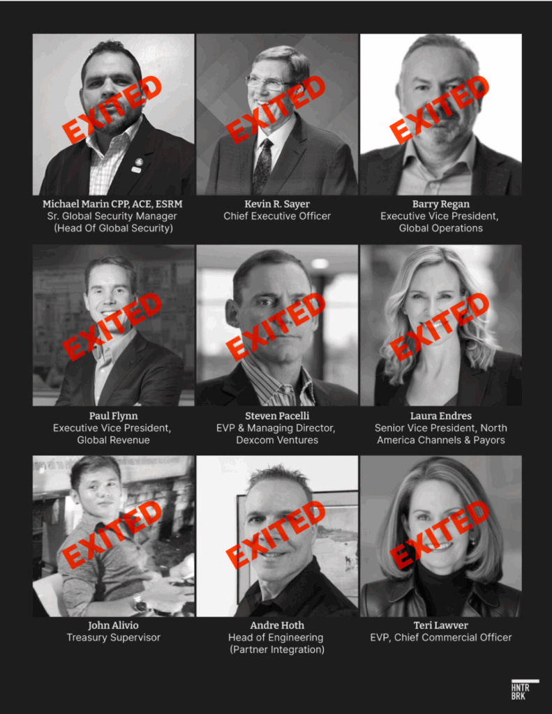 Executive exodus: Several top executives left within a year including the CEO, VP of Global Operations, Chief Commercial Officer, and Head of Engineering, according to SEC filings, LinkedIn profiles, and Dexcom website pages. Longtime CEO Kevin Sayer was supposed to stay through the end of 2025 and then become executive chairman, but unexpectedly left this week, citing medical leave. The new CEO is the son-in-law of Dexcom’s former CEO.