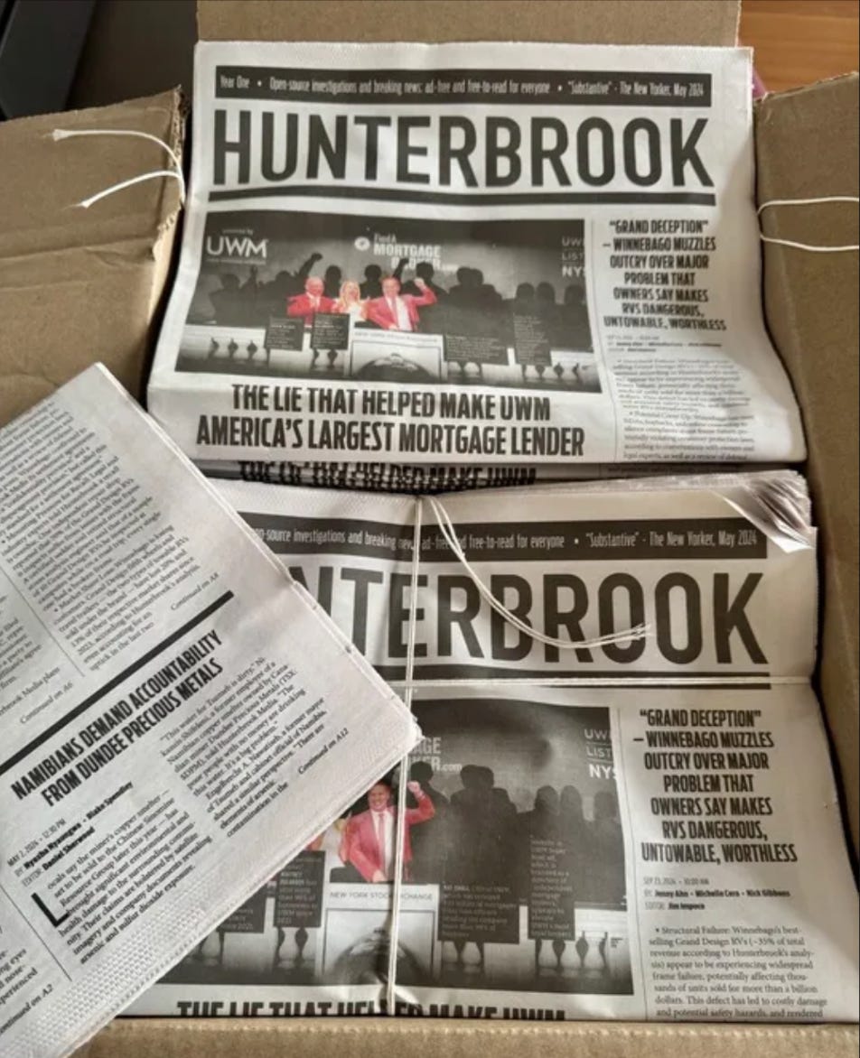 As a testament to the newsroom’s work — and momentum across both our investment business and new litigation platform — Hunterbrook is thrilled to share we closed additional funding at a $100 million valuation, double that of our launch round, from an awesome group of mission-aligned investors.
