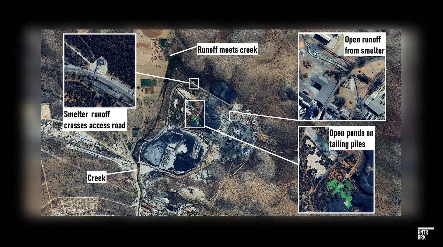 Combining on-the-ground reporting in Namibia with satellite imagery, we found evidence the concerns of sick Tsumeb residents who claimed a nearby facility had potentially dangerous leaks and other risks to the environment. Dundee Precious Metals, which had struck a deal to sell the property to a Chinese miner, more than halved the price after Hunterbrook’s reporting.