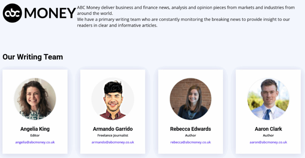 On its “about us” page, ABC Money purports to have a writing team, with multiple staff journalists.