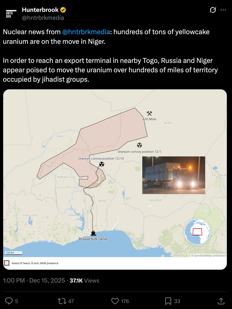 In the meantime, in case the news cycle hasn’t been terrifying enough for you, catch up on our thread revealing… a hundred tons of yellowcake uranium that ended up in the wrong hands!